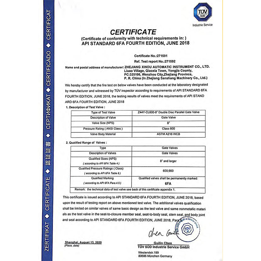 閘閥防火證書 1